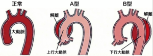 ・A型:心臓に近い、「上行大動脈」が裂けるタイプです。心臓に影響し、突然死に至る危険性が高いため、一刻も早い緊急手術が必要です。