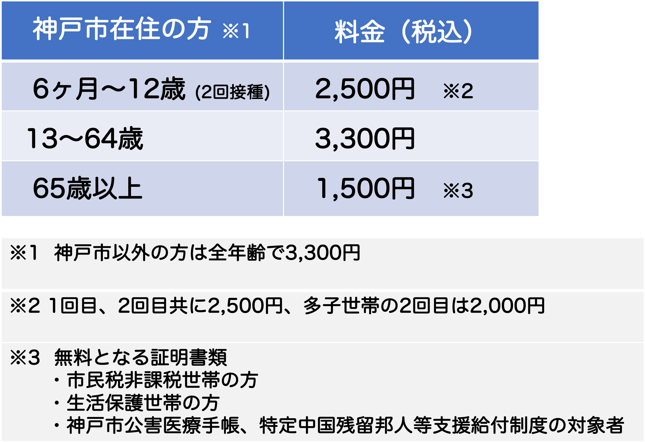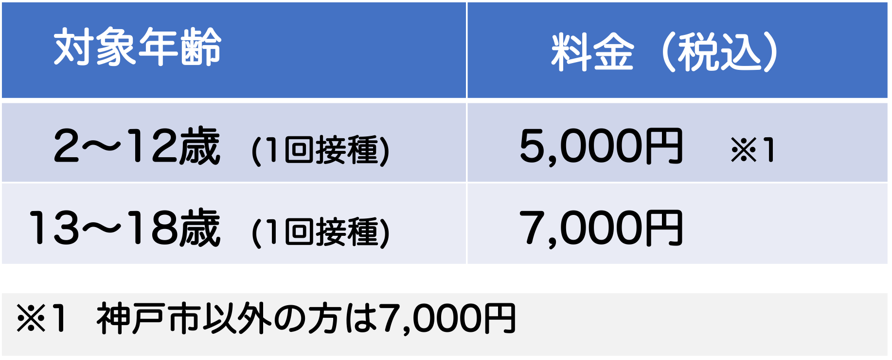 接種料金:ビケン:4,000円、シングリックス:10,000円/回