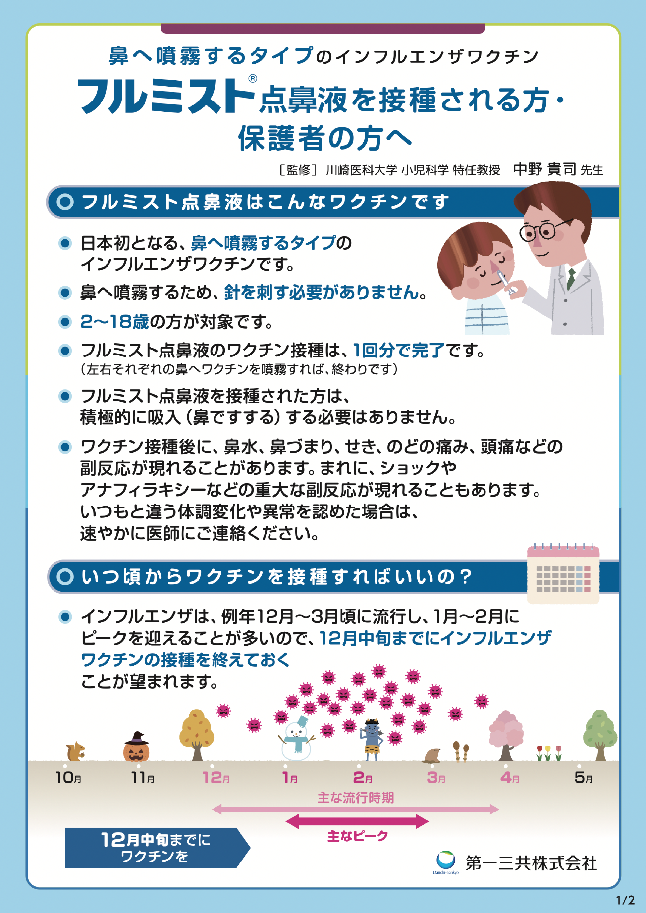 ●経鼻インフルエンザワクチン(フルミスト点鼻液)